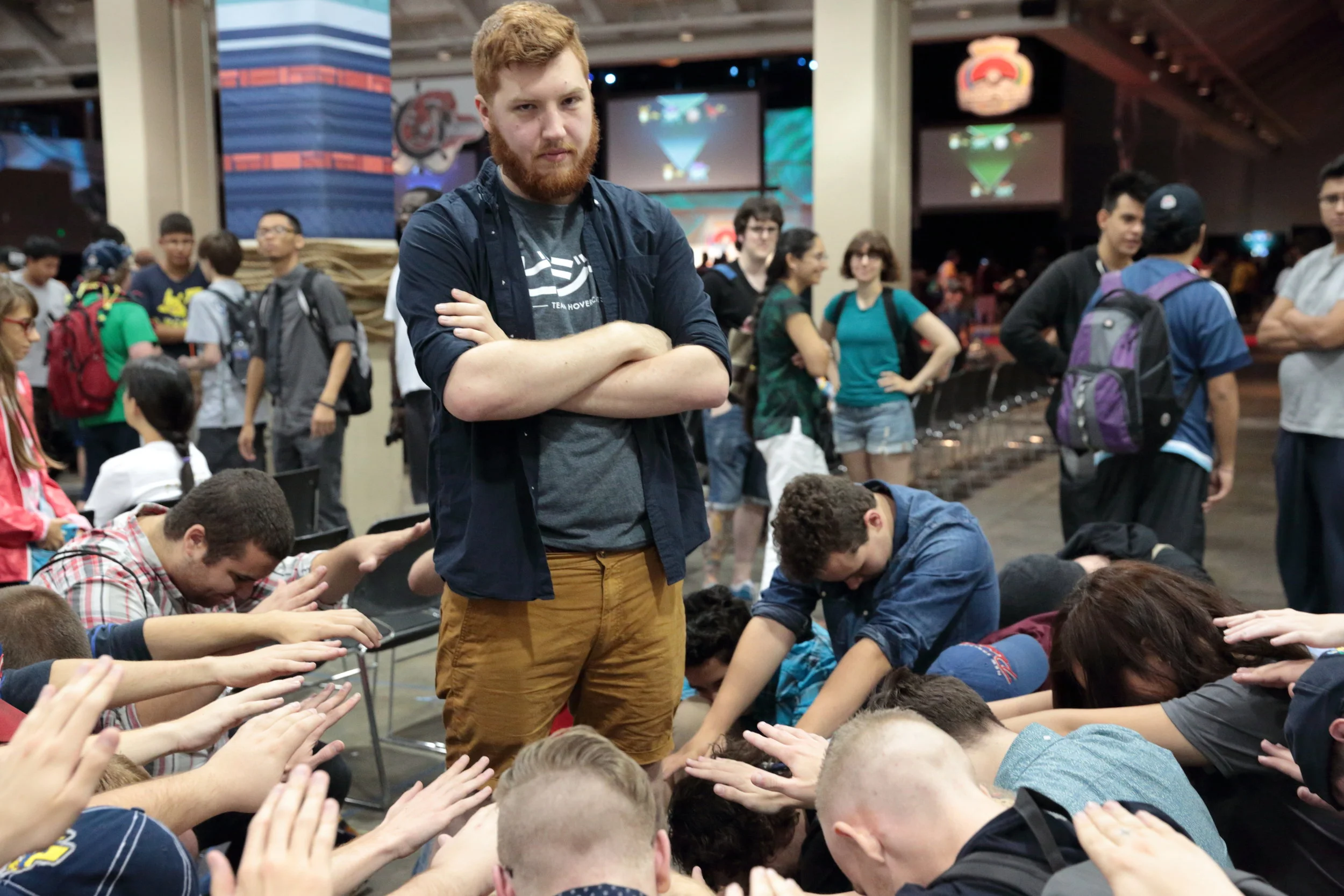 Sometimes an inspiration occurs and you have to break the rules and create a moment. One of my favorite examples was with Jacob Van Wagner at the 2015 World Championships in Boston. Jacob had just became the world champion and was surrounded by his friends on the main floor. Looking at what was developing in front of me amidst the mayhem of hugs and hi-fives, I wanted to do something special for the new champ. The present scene was a sea-of-same. Champs get swarmed in celebration. Yawn. But what else can we do? I reflected on Jacob. What I knew of him as a person. For years I have shot pics of Jacob. I know him as one of the most polite, humble and reserved players in the game. Then it hit me. Lets do the opposite. Don't capture the moment. Make a moment. Lets pose Jacob with his friends. But let's take the opposite to an extreme. Juxtapose him in contrast to his regular persona to mark his championship moment. OK. Great. But what to do? How do we quickly reshape the group into a meaningful shot without having to pose each person? I searched for inspiration.